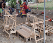 In unserer Baustelle im Garten entstehen durch Teamwork interessante Bauwerke.