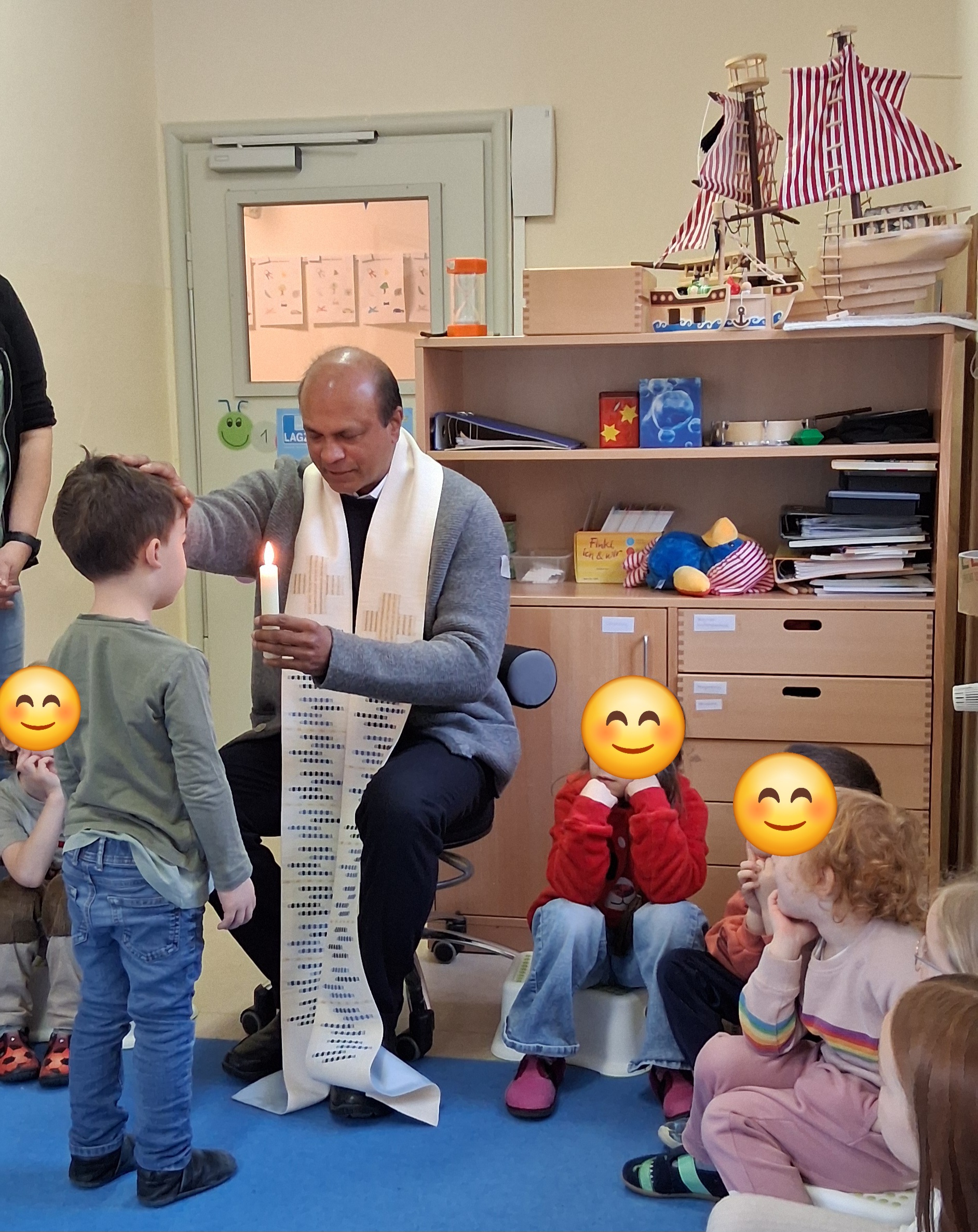 Pfarrer Plattotham besuchte jede Gruppe und gab wer wollte den Blasiussegen.